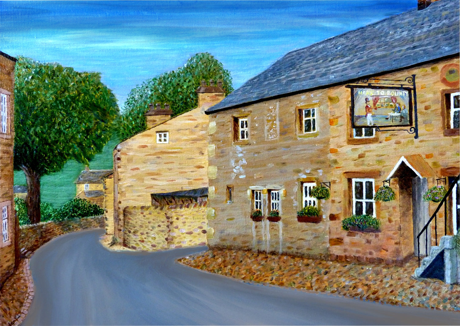 This bright and colourful oil painting showcases the River Hodder in Slaidburn, on a bright spring day.