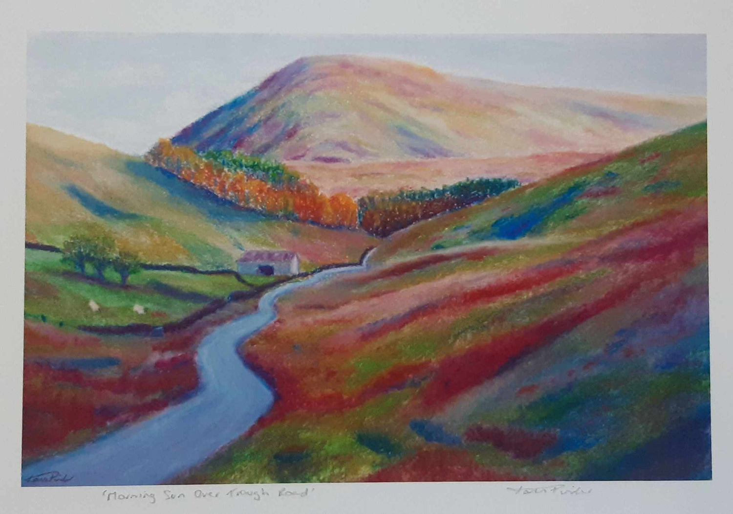 This colourful soft pastel drawing showcases this glorious view of the Trough Road in the Trough Of Bowland, Lancashire.