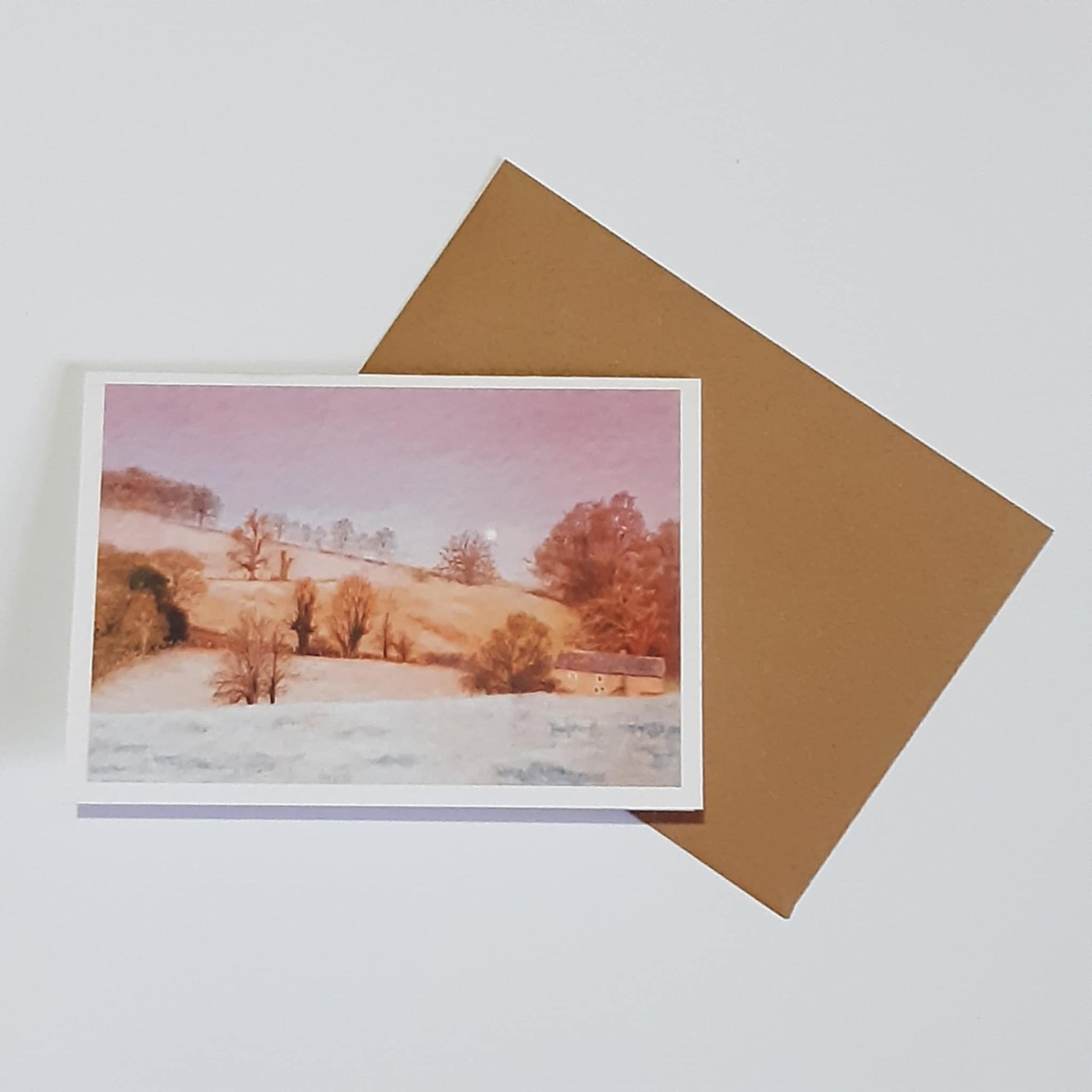 This set of lovely 5 notecards showcase my landscape artworks in soft pastel and oil paintings of scenes from the Forest Of Bowland. The Forest Of Bowland is a firm favourite with walkers and cyclists. There are five different cards (View Above Whitewell, Close To Home On Waddington Fell, A Slaidburn Winter Dawn, The River Hodder and Field To St. Andrew's Church).